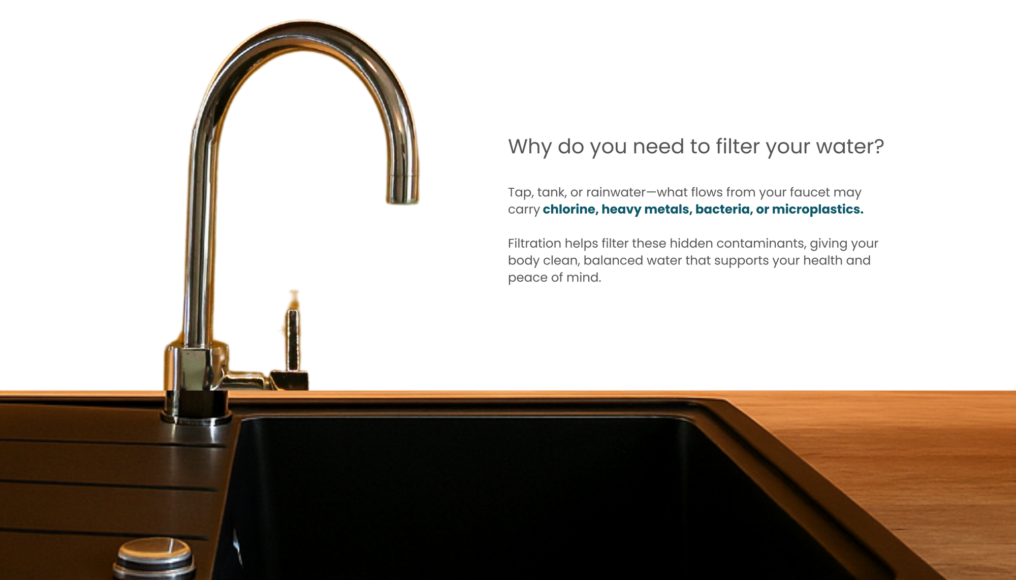 Attach directly to your kitchen tap for an uninterrupted supply of filtered, remineralized water—no electricity needed.
